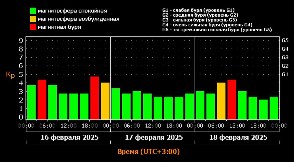 Первая серия таких бурь прошла 13-14 февраля, затем наступило небольшое затишье. Теперь на подходе вторая серия коротких магнитных бурь: ожидается, что они пройдут 16-18 февраля.