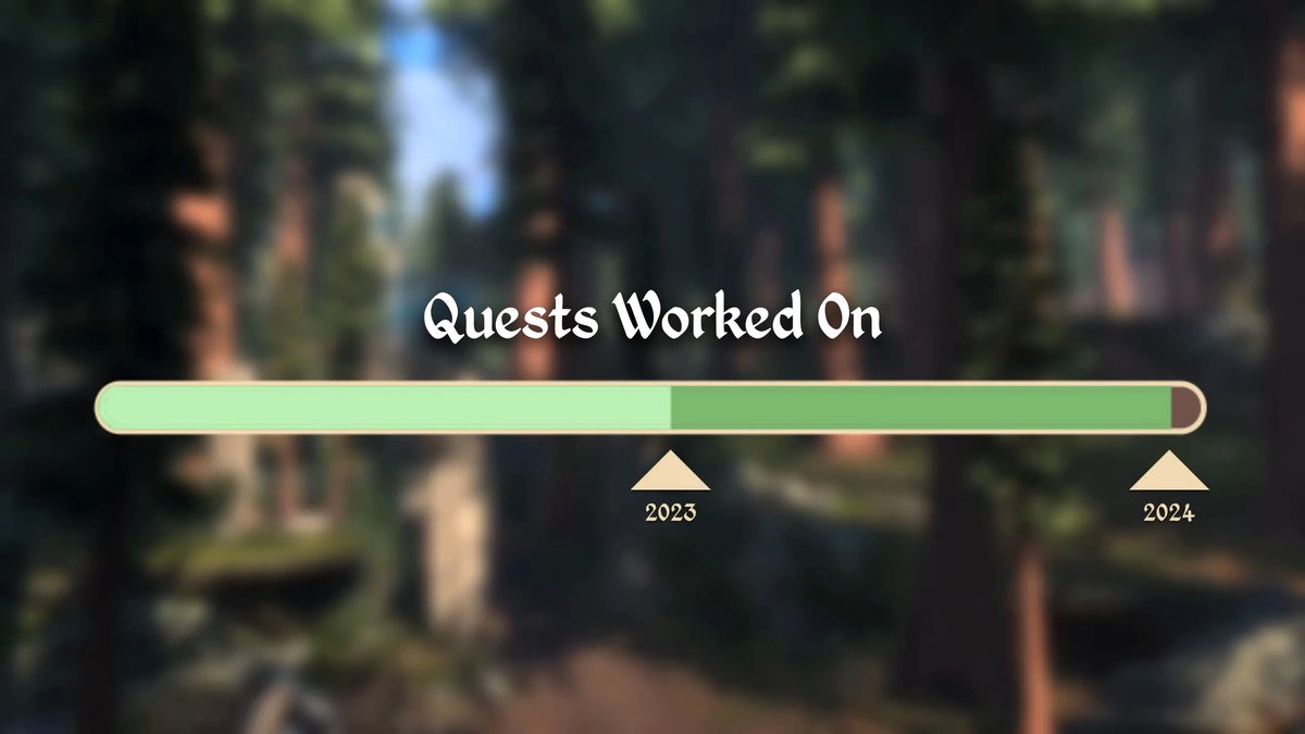 Работа над самими квестами тоже почти завершена: в 2024 году была создана большая часть оставшихся заданий. Остались мелочи: немного зданий, чуть-чуть предметов одежды, небольшое количество оружия и растений.