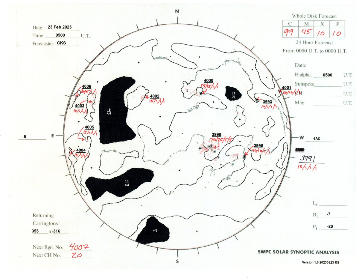 Поток солнечного ветра, истекающий из корональной дыры в атмосфере звезды, все-таки может привести к магнитной буре — первой за достаточно большой промежуток времени. Согласно последним прогнозам, буря ожидается в районе 28 февраля или 1 марта — в зависимости от скорости ветра.