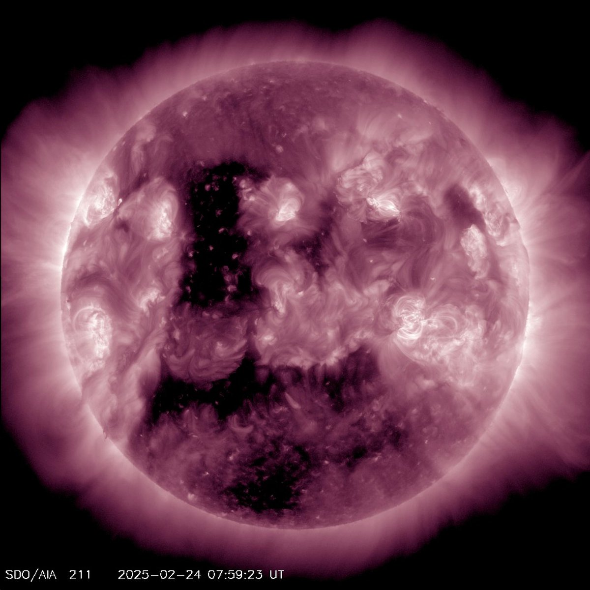 Сейчас магнитная буря на Земле ожидается не раньше 28 февраля или 1 марта: ее вызовет поток солнечного ветра из корональной дыры в атмосфере Солнца. Сама дыра (на самом деле это набор из нескольких дыр) сейчас постепенно поворачивается к Земле.