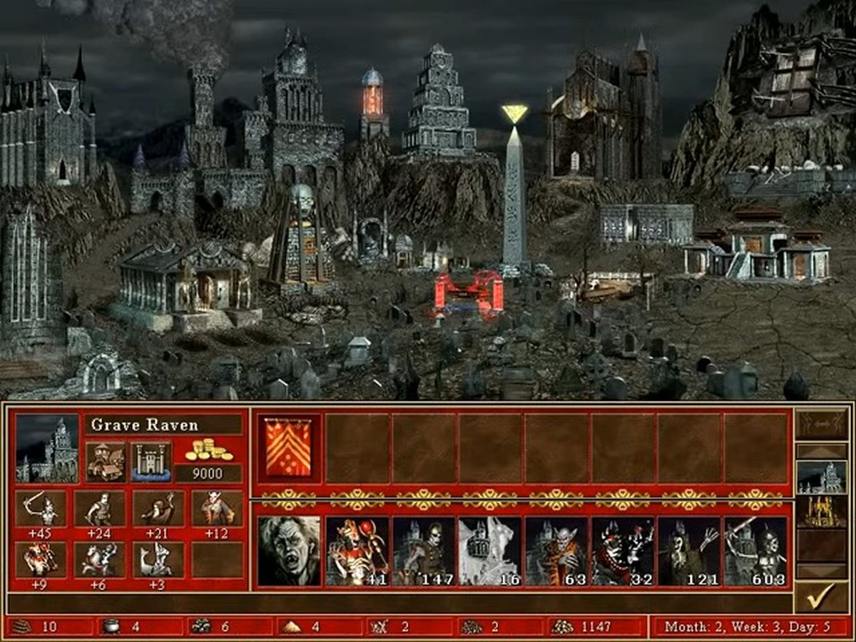 Для сравнения: вот так Некрополис выглядел в оригинальной Heroes of Might and Magic 3. Синематиков вроде того, что показал художник, в игре не было.