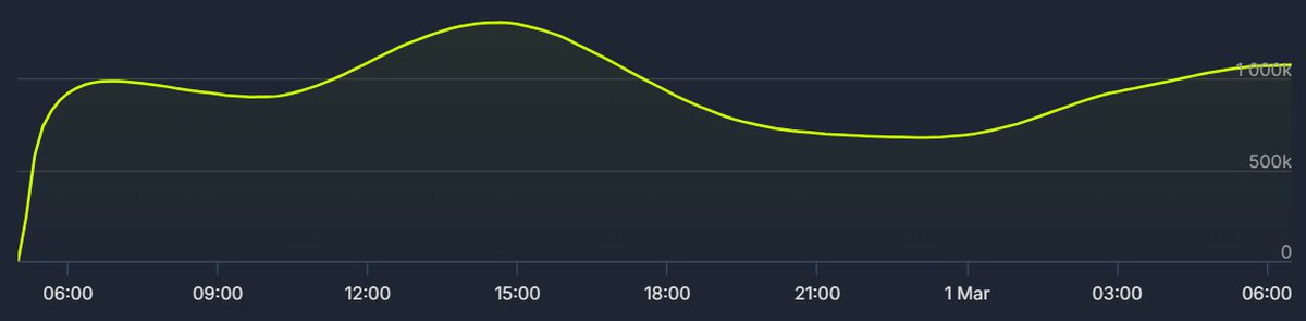 Более высокий онлайн был всего у нескольких проектов: PUBG, Black Myth Wukong, Palworld, Counter-Strike 2 и Lost Ark. Скорее всего, на выходных Monster Hunter Wilds обойдет Lost Ark: для этого онлайн должен превысить 1.325 миллиона человек.