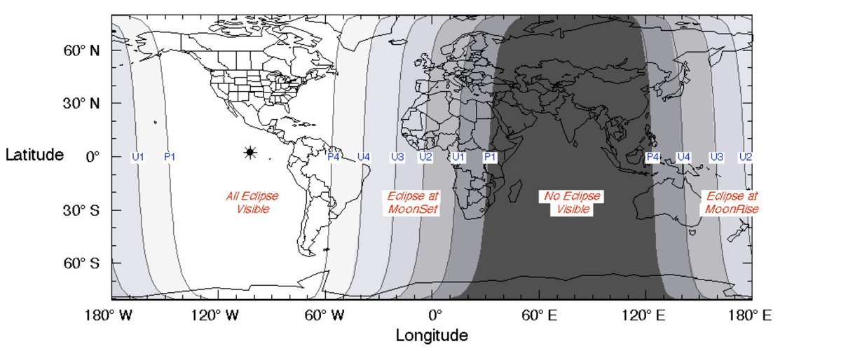 В части Африки, Европы, Австралии, Японии и России затмение будет видимо очень плохо. Больше всего повезло жителям западной части Европы и западного африканского побережья, они ближе всего к зоне полной видимости затмения. Жители большей части территории России не увидят вообще ничего.