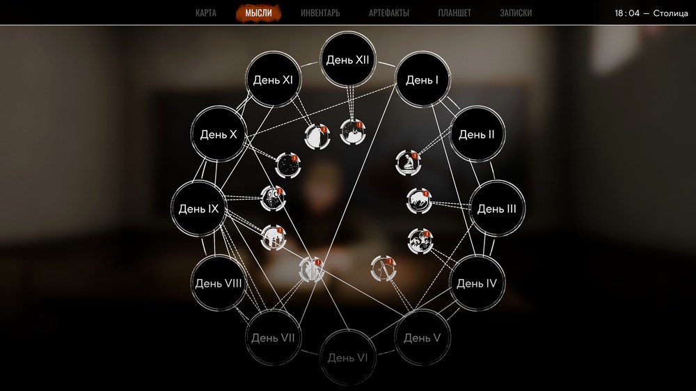 Но, пожалуй, самое интересное то, что в этот раз у главного героя есть возможность перемещаться в прошлое. Базовая сюжетная линия основывается на том, что Бакалавр уже вернулся в Столицу и теперь рассказывает о том, что с ним случилось. Рассказывает он плохо, то и дело забывая и вспоминая новые детали. Но именно это и позволяет нам, используя внутриигровые напольные часы, перемещаться по дням и менять некоторые события так, чтобы, собственно, не умереть.