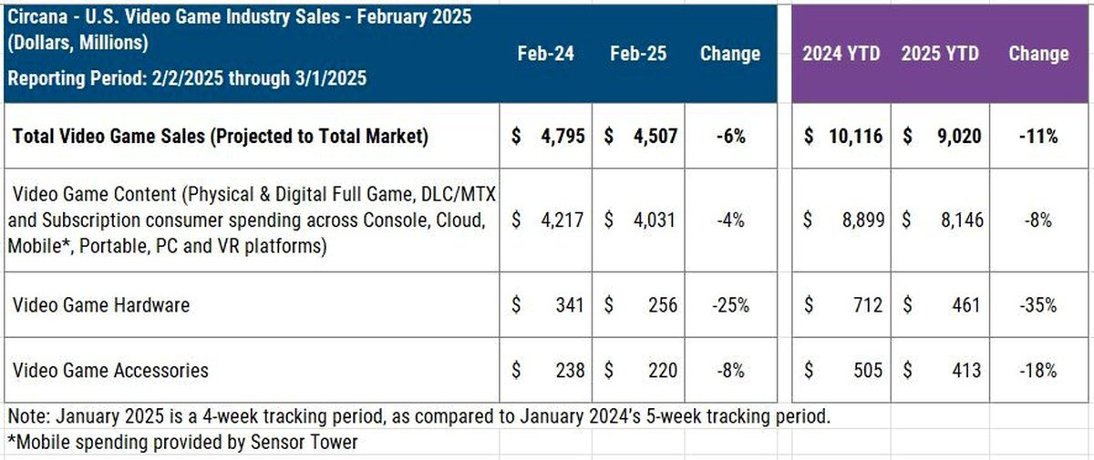 Самой продаваемой консолью февраля вновь стала PlayStation 5, но есть интересный момент: затраты на покупку консолей упали сразу на 25% по сравнению с прошлым годом, до $256 миллионов. Это худший результат за 5 лет.