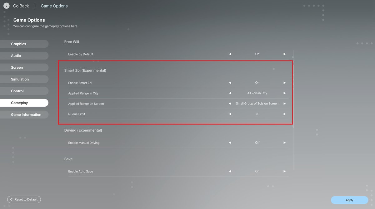 Функция считается экспериментальной, игроки могут настраивать активность ее применения. Например, разрешается включить улучшенный ИИ только для части NPC, присутствующих на экране.