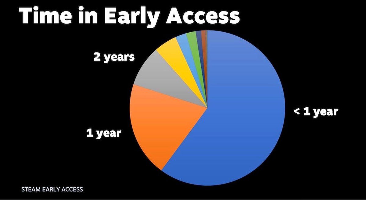 Кроме того, в Valve подсчитали, что в среднем игры проводят в раннем доступе меньше года. Около четверти проектов находятся на этой стадии год, достаточно большое количество игр проводит в раннем доступе два года.