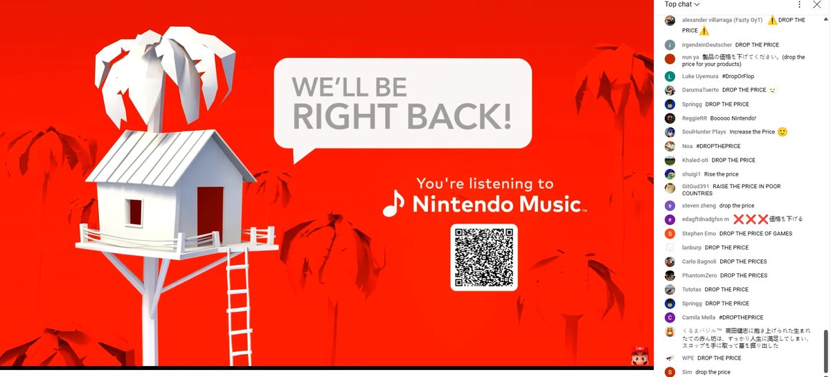 Во время стрима Treehouse, заметили в Eurogamer, зрители зафлудили чат на YouTube предложениями сбросить цену на Switch 2 до приемлемого уровня. Некоторые в шутку предлагали повысить цену еще сильнее, но в основном комментаторы выступали за снижение.