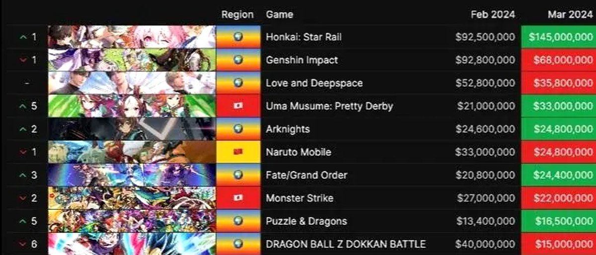 В феврале Genshin Impact, Honkai Star Rail и Zenless Zone Zero, ключевые проекты miHoYo, заработали в районе $93 миллионов. В марте совокупная выручка этих игр упала до уровня $84.6 миллиона.