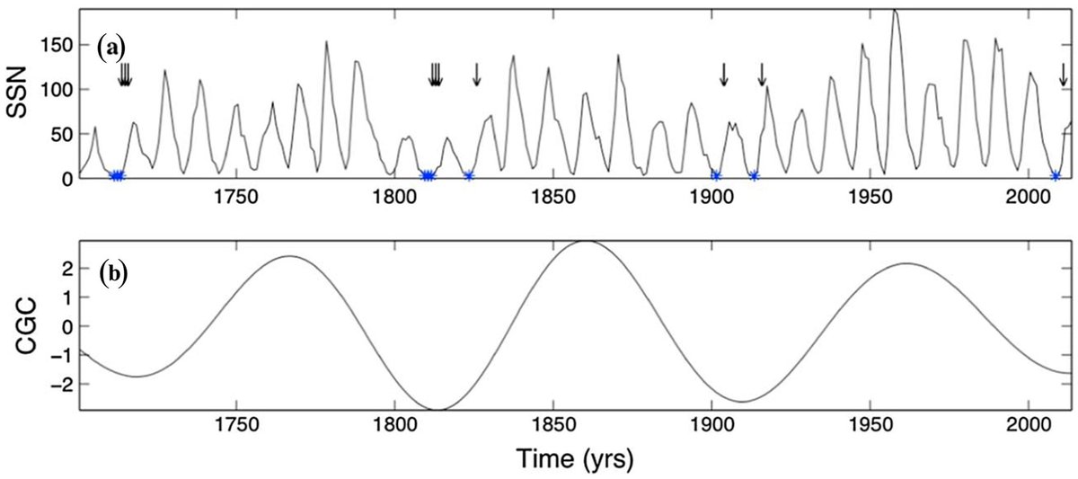 Достаточно давно известно о существовании так называемого солнечного цикла Гляйсберга, период которого длится около века. На пике этого цикла солнечная активность повышается — мощных вспышек, выбросов и магнитных бурь становится больше, — а в нижней точке активность звезды снижается.