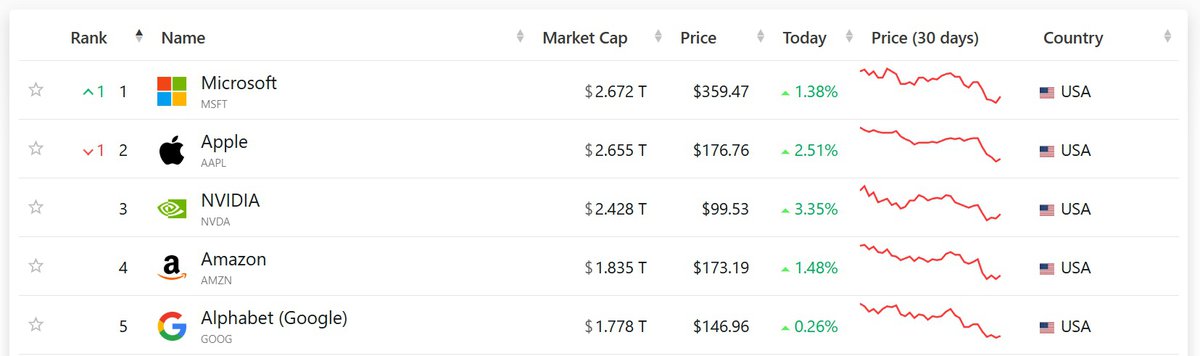 Корпорация Apple утратила звание самой дорогой публичной компании мира, пропустив на первое место Microsoft. Сейчас капитализация Apple равна примерно $2.655 триллиона, у Microsoft капитализация находится на уровне $2.672 триллиона.