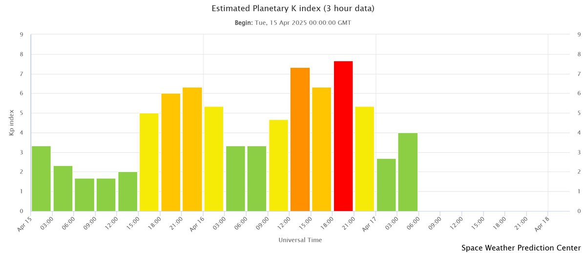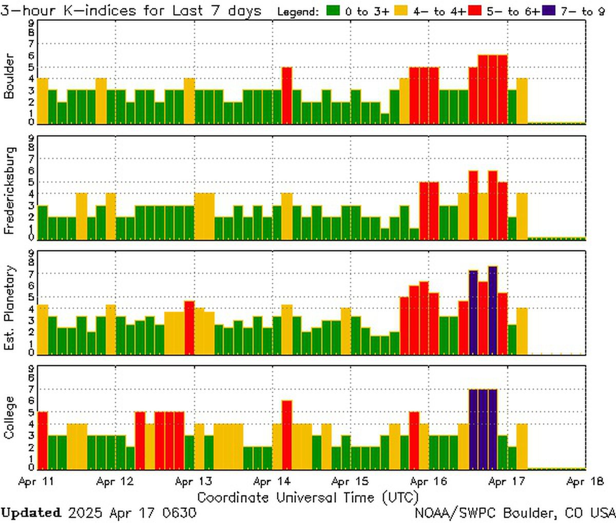 Магнитной буре 16-17 апреля в очередной раз удалось превзойти ожидания аналитиков. Сперва ожидалось, что сила геомагнитной бури не превысит класс G2, затем речь шла о классе G3. В реальности буря на пике достигла класса G4.