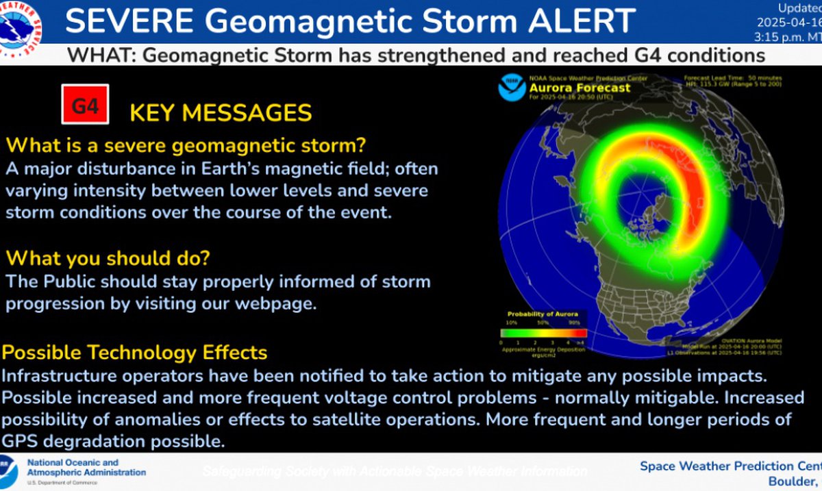 Согласно данным NOAA США, буря такой силы наблюдалась на протяжении небольшого промежутка времени и фиксировалась только в некоторых регионах Земли. G4 — предмаксимальный класс силы магнитных бурь, в 2025 году это первый раз, когда фиксируется буря такой силы.