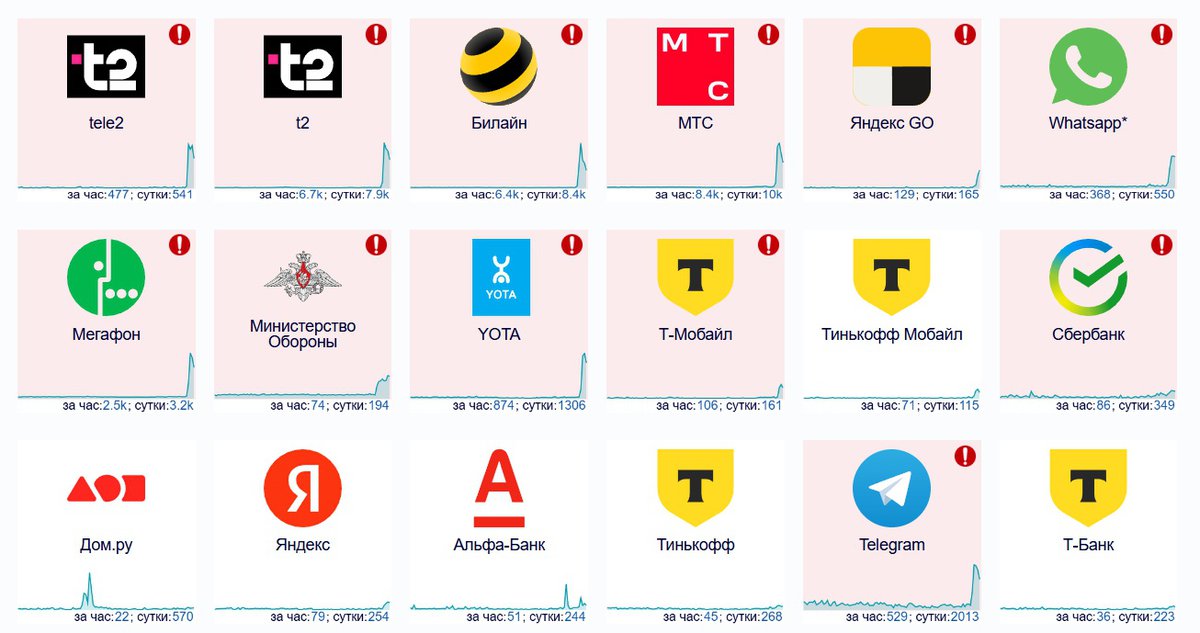 Кроме того, пользователи сообщают о проблемах в работе мессенджеров: есть жалобы на Telegram и WhatsApp. Также выросло число жалоб на стабильность работы Яндекс Go.