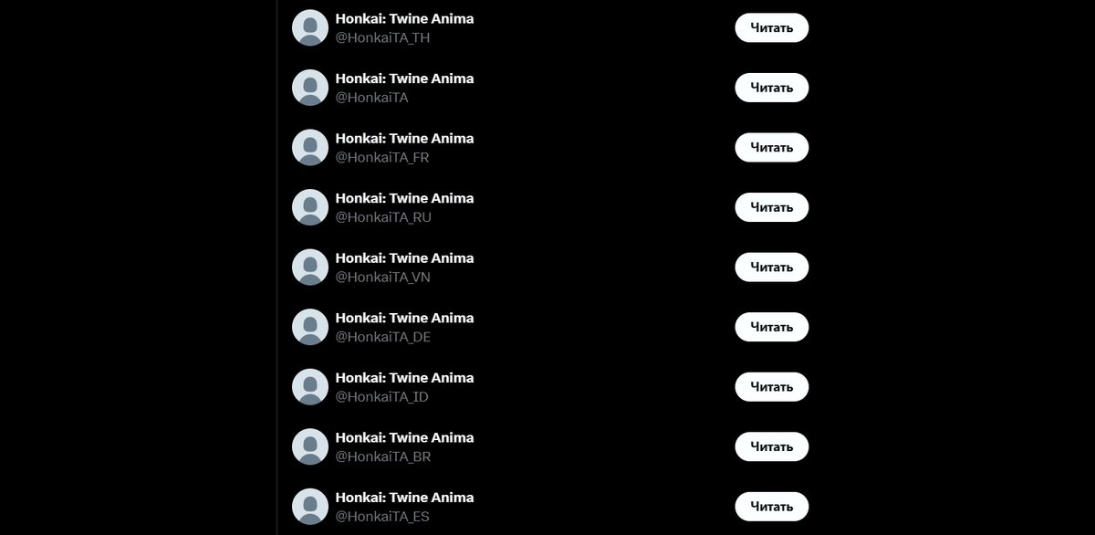 Интересный момент: в X/Twitter уже появились аккаунты Honkai Twine Anima, названия которых указывают на регионы, где будет доступна игра. В России проект, видимо, тоже появится.
