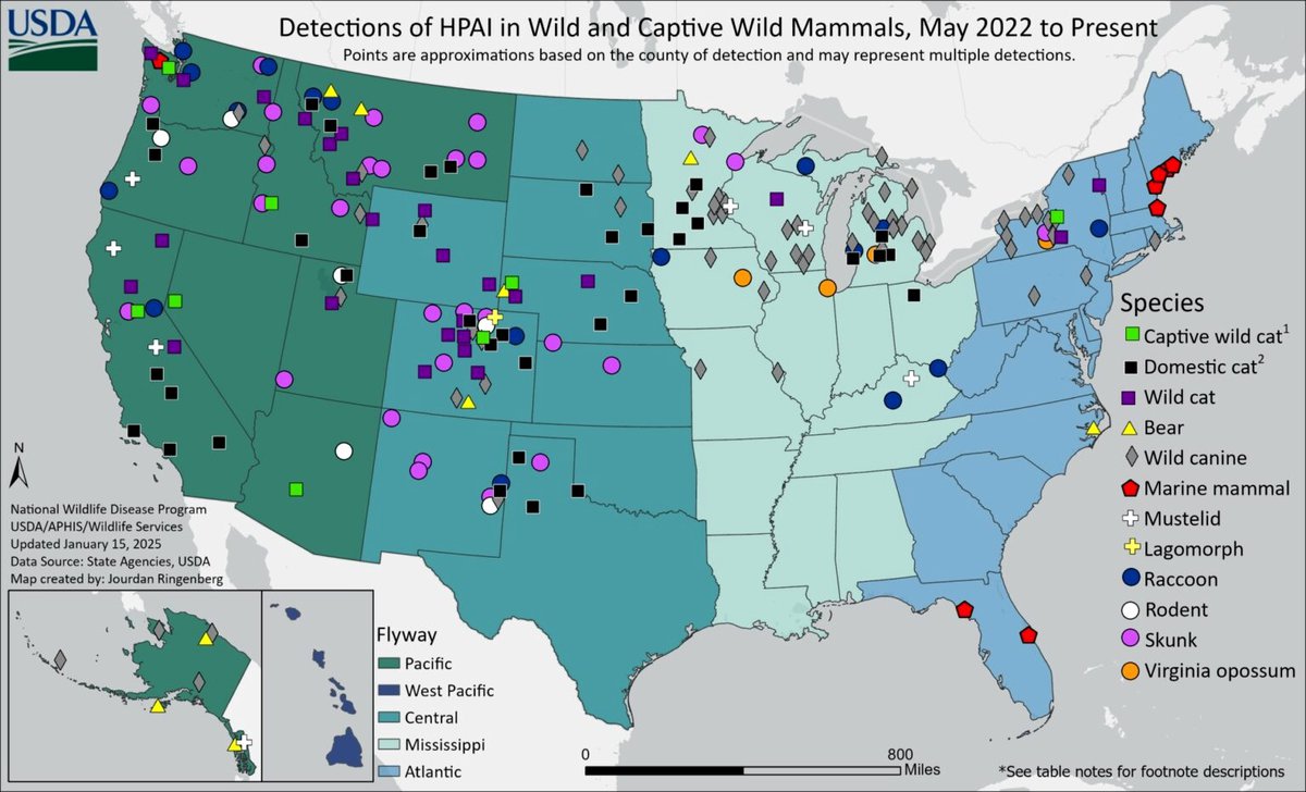 Теоретически, считают исследователи, из-за сезонной миграции птиц вирус может проявляться в популяции кошек на всей территории США. Нынешние данные о распространении птичьего гриппа среди кошек считаются заниженными.