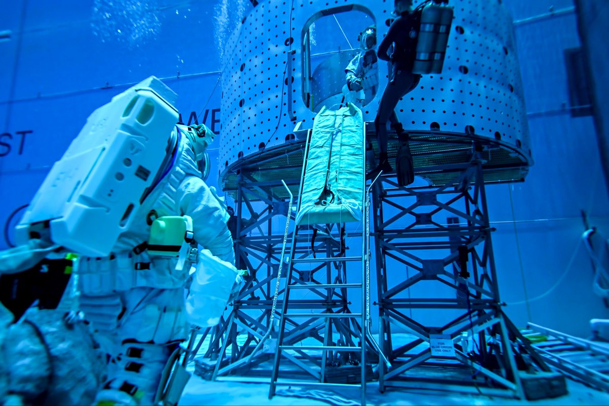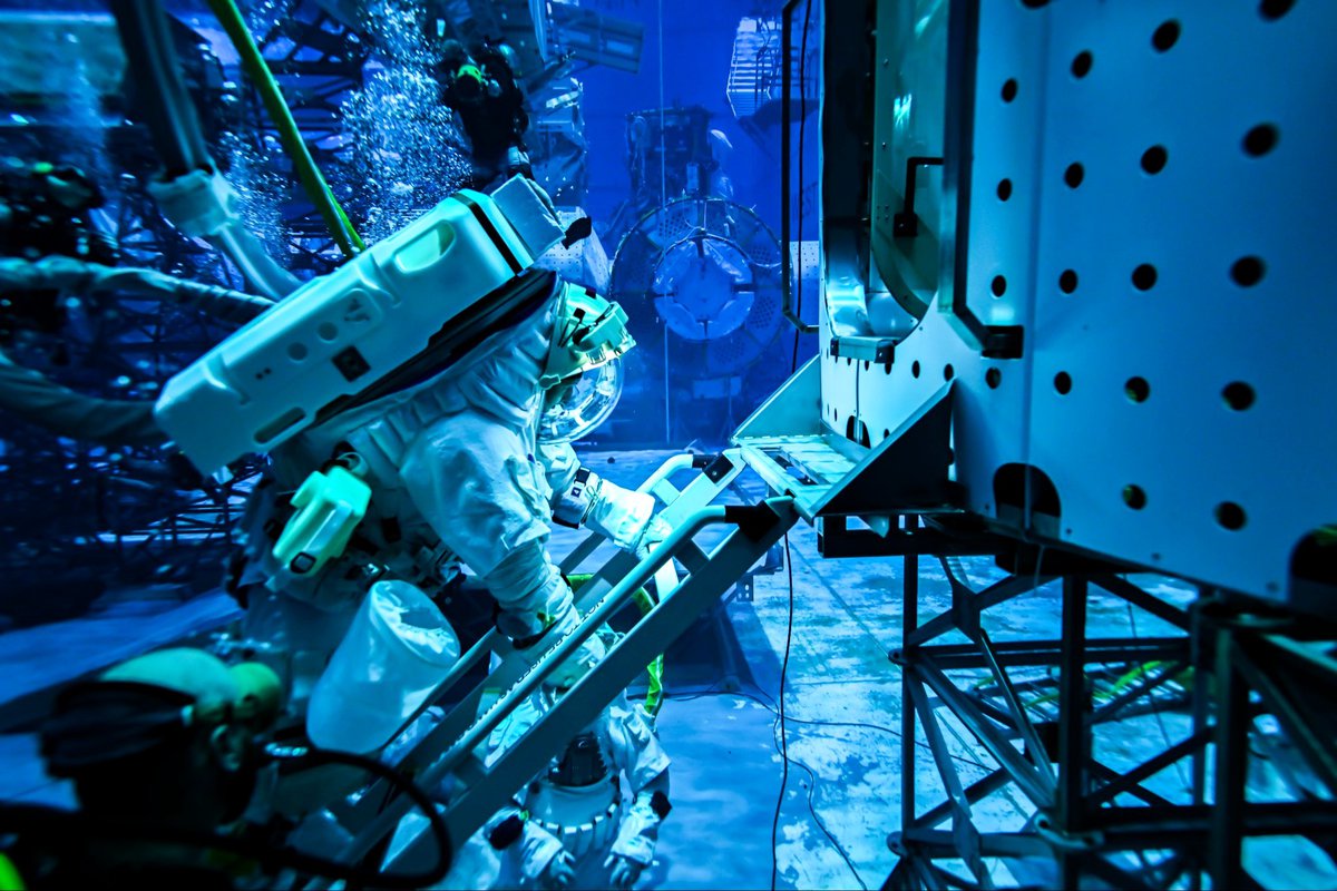 NASA и Blue Origin показали, как отрабатывается выход людей на Луну из корабля Blue Moon MK2. Для тренировок используется огромный бассейн, имеющийся на одной из баз NASA.