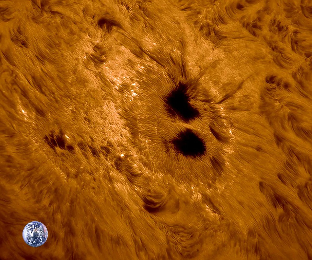 Сейчас AR4100 удерживает рекорд по размеру среди солнечных пятен, наблюдавшихся в 2025 году. Еще во время предыдущего оборота ядра пятна были по размеру сопоставимы с Землей, а само пятно было в несколько раз больше.