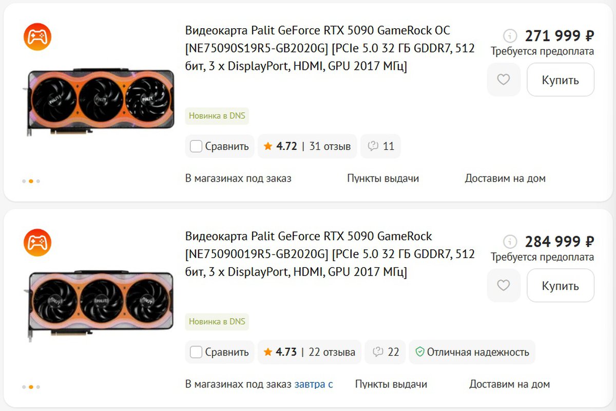 В России стоимость GeForce RTX 5090 пока находится в районе 300 тысяч рублей, за некоторые версии карты просят значительно больше.
