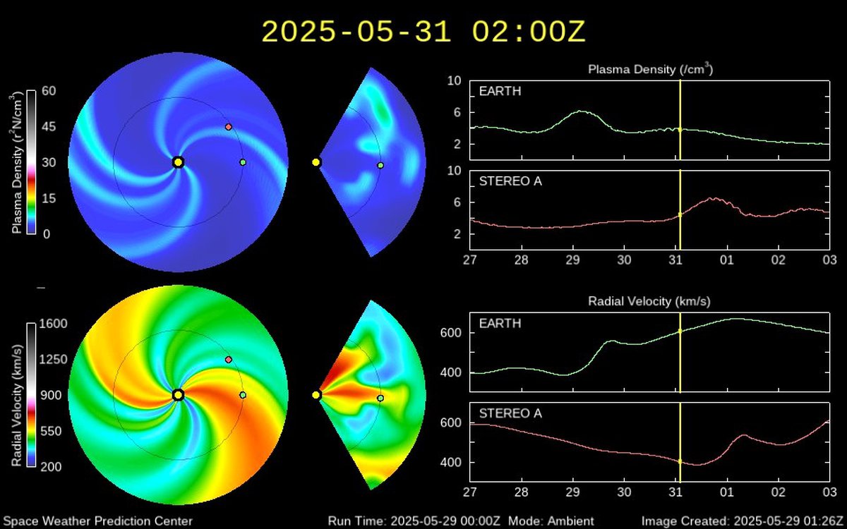 Если к 30 мая Земля выйдет из области совращающегося взаимодействия, то магнитная буря либо ослабнет до класса G1, либо вообще утихнет. Прямо сейчас нет других факторов, способных инициировать магнитные бури в этот день.