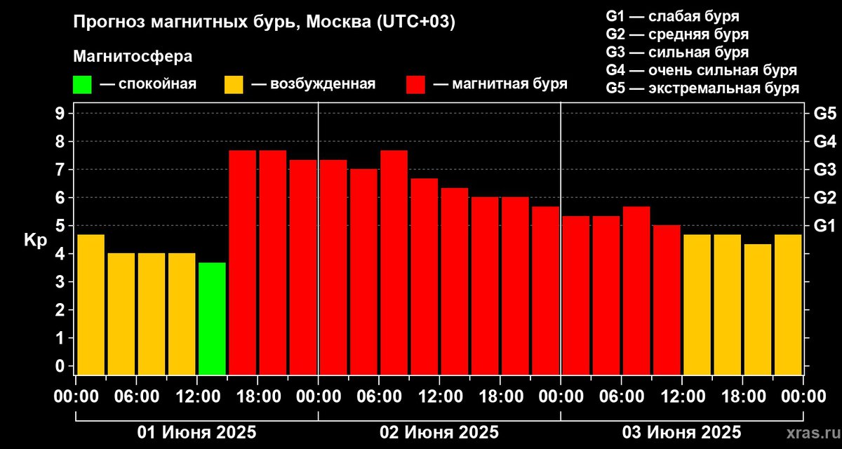 - Прогноз геомагнитных бурь на 1 июня — идет шторм
