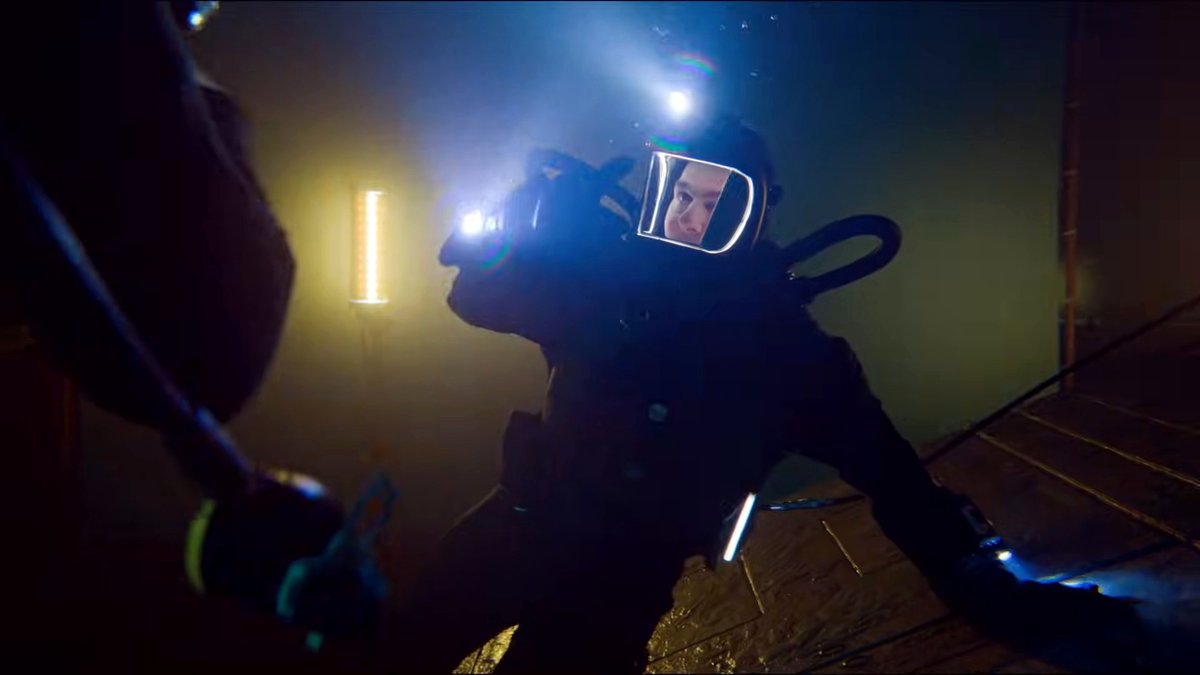 В новой части «Миссия невыполнима» есть момент, когда герой Тома Круза обследует затопленную подводную лодку и вынужден спасаться от торпед, падающих с креплений из-за вращения корабля. Примерно так все и выглядело во время съемок.