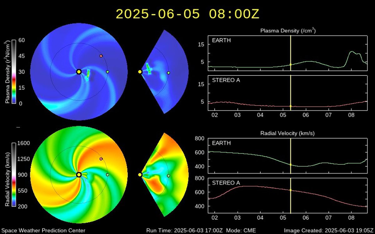 Аналитики считают, что в худшем случае буря растянется на 6 часов и закончится в районе полудня 5 июня по Москве. Согласно актуальной модели распространения солнечного ветра, есть вероятность, что магнитной бури вообще не будет и Земля пройдет между потоками частиц.