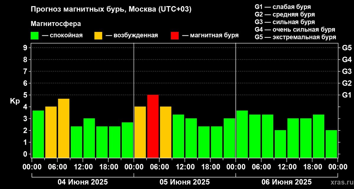 - Прогноз геомагнитных бурь на 6 июня — риск небольшой