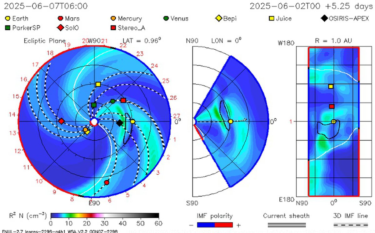 Скорее всего, на выходных геомагнитный фон тоже будет спокойным. Более точный прогноз на 7-8 июня появится во второй половине дня 6 июня.