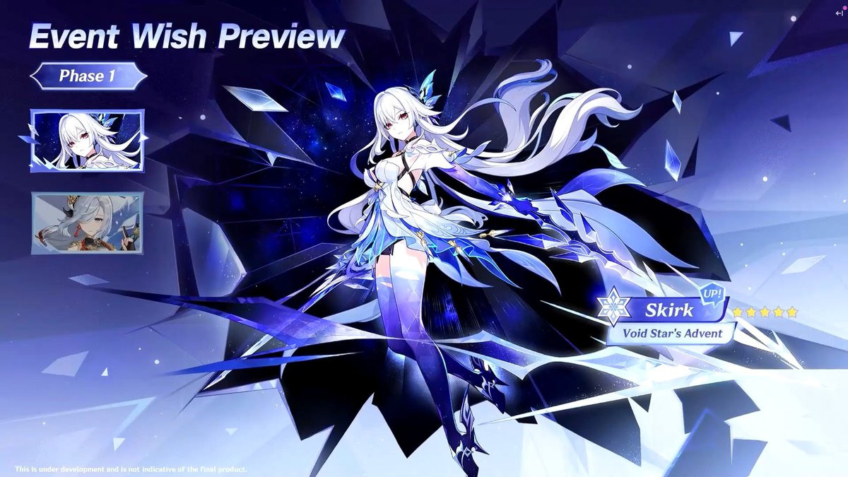 Как и ожидалось, в первый баннер обновления 5.7 попали оба новых персонажа, Скирк (5 звезд редкости) и Далия (4 звезды редкости). Вместе с ними в баннере будут Шэнь Хэ, Кандакия и Диона.