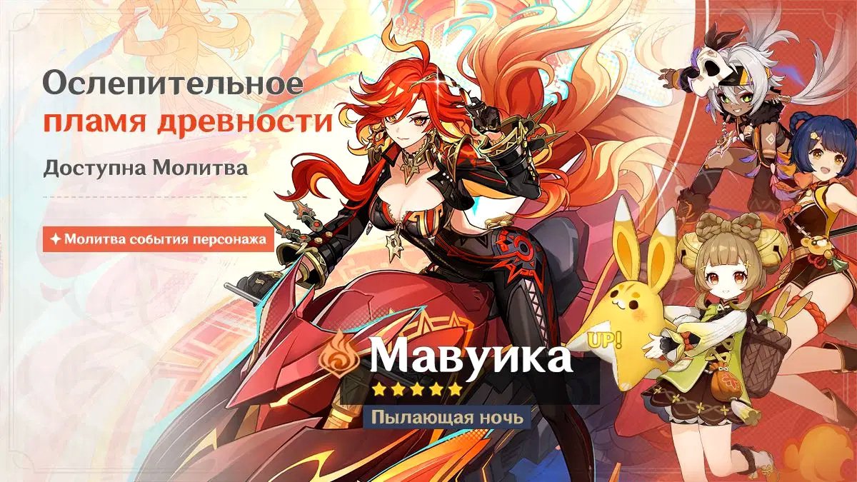 - Мавуика: реран, 5 звезд редкости, пиро, двуручное.
