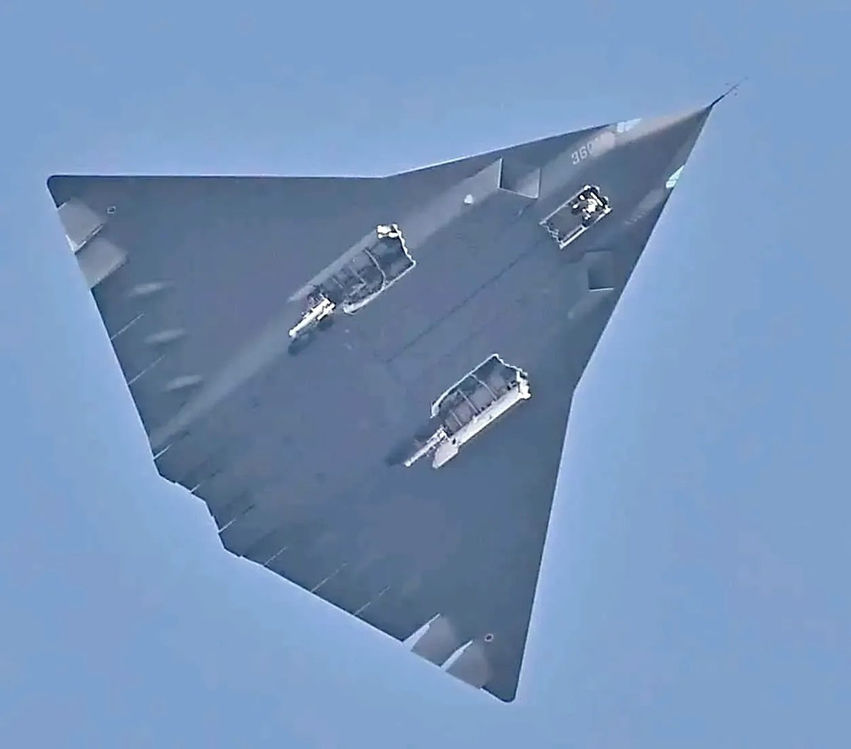Также на новом кадре можно рассмотреть открытые люки отсеков для вооружения. Судя по люкам, у J-36 есть два вида таких отсеков — побольше и поменьше. Створки отсека шасси самолет расположены в другом месте, на фотографии явно открыты не только они.