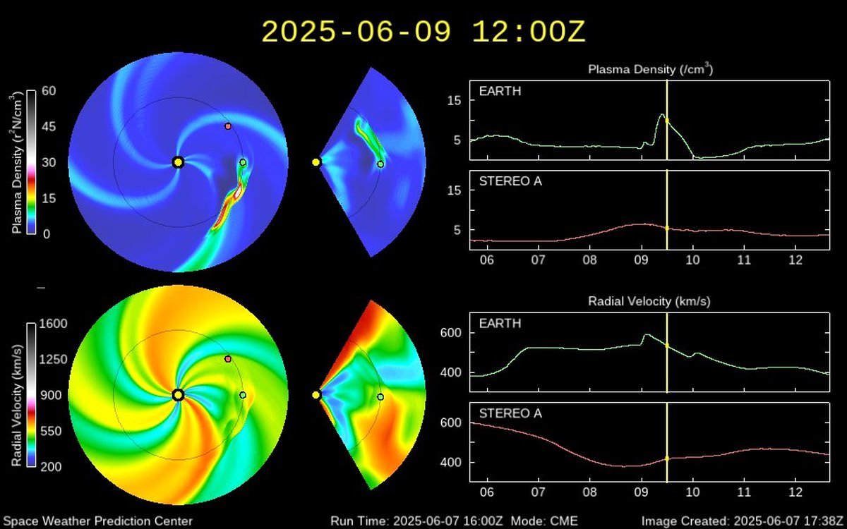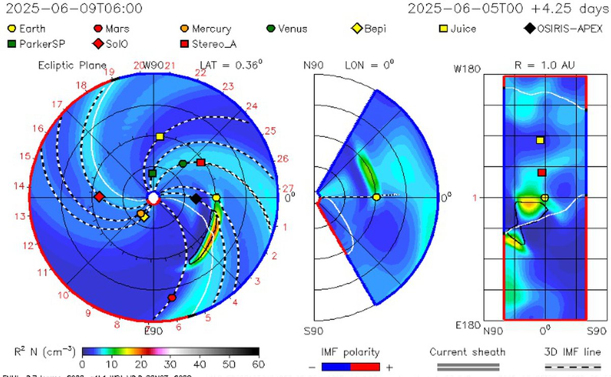 Перед началом магнитной бури 9 июня магнитосфера Земли будет возбуждена сильнее, чем обычно. Более высокий уровень возбуждения растянется на несколько часов и будет балансировать на уровне полноценной геомагнитной бури.