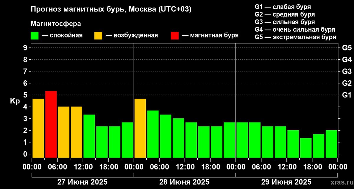 - Прогноз магнитных бурь на 26 июня — задержавшийся шторм