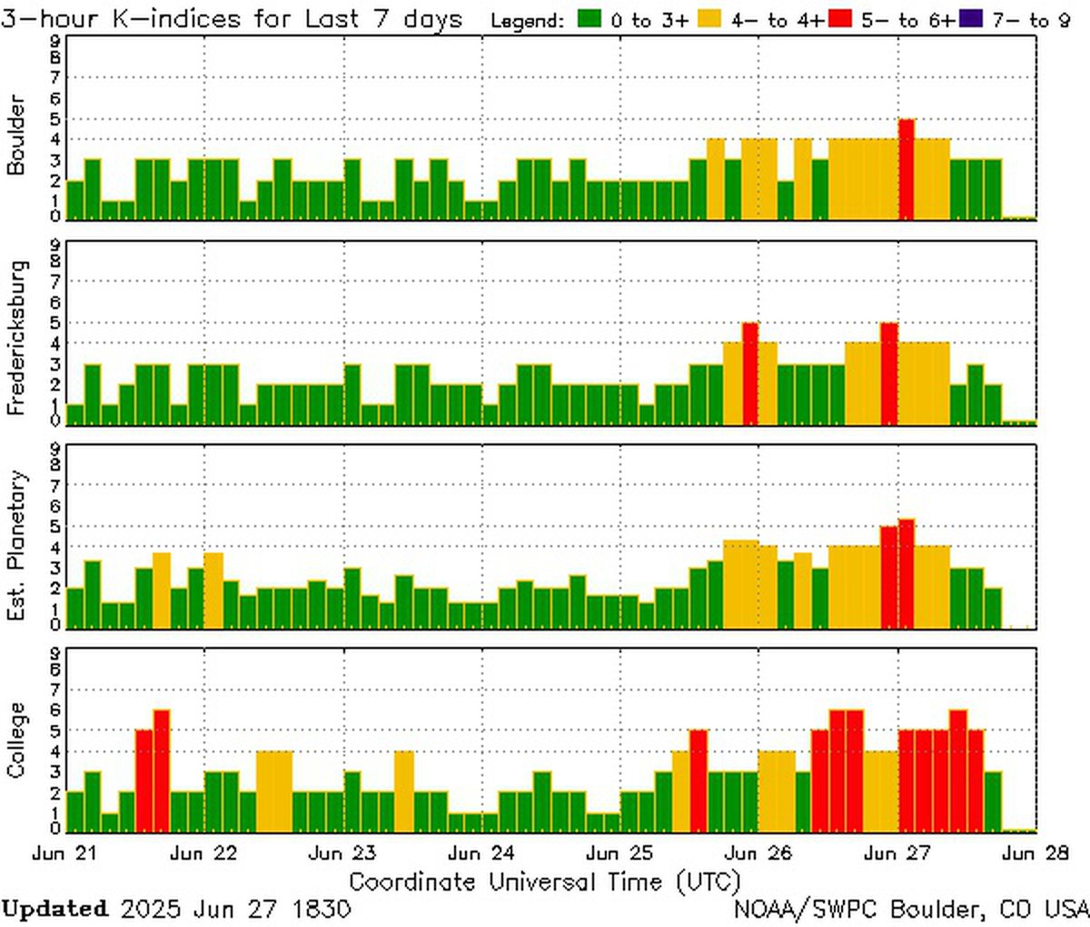 Первые реальные данные с детекторов это подтверждают. Дневная магнитная буря 27 июня более-менее сошла на нет, фиксируется стабилизация магнитного поля Земли на обычном уровне.