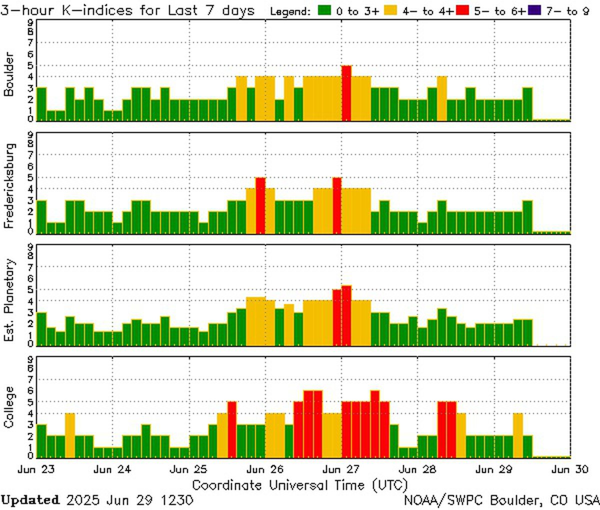 В последний день июня геомагнитная обстановка будет спокойной, считают аналитики NOAA США. Магнитной бури 30 июня не будет, значимое возбуждение магнитосферы тоже не ожидается.