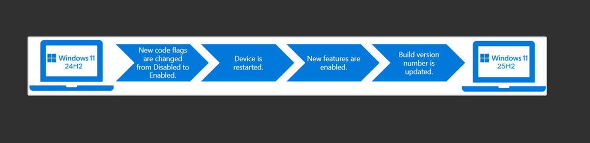 Обновление построено на том же сервисном стеке, что и 24H2. Благодаря этому обновление 25H2 будет устанавливаться так же быстро, как и обычное кумулятивное обновление.