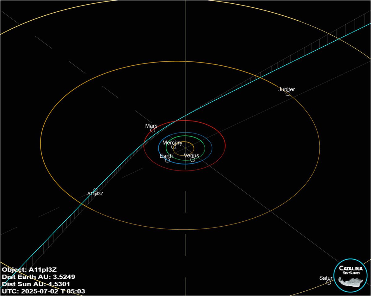 Сейчас A11pl3Z находится внутри орбиты Юпитера и продолжает движение к Солнцу. Ожидается, что в октябре объект окажется в районе орбиты Марса, а затем покинет Солнечную систему.