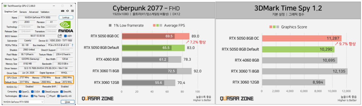 Благодаря разгону GeForce RTX 5050 можно приблизить к уровню GeForce RTX 3060 Ti, но догнать GeForce RTX 5060 новой видеокарте точно не удастся. При этом GeForce RTX 5060 стоит всего на $50 дороже, чем GeForce RTX 5050.