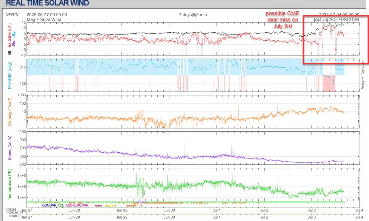 Земле удалось избежать магнитных бурь 2 и 3 июля, предсказывавшихся аналитиками. Поток солнечного ветра из коронального выброса массы прошел рядом с планетой, но до геомагнитной бури дело не дошло.