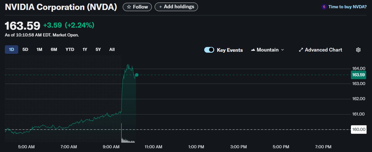 На момент взятия рекордной отметки за одну акцию Nvidia давали свыше $164. С тех пор стоимость акций слегка упала, капитализация Nvidia просела ниже $4 триллионов: сейчас она на уровне $3.986 триллиона.