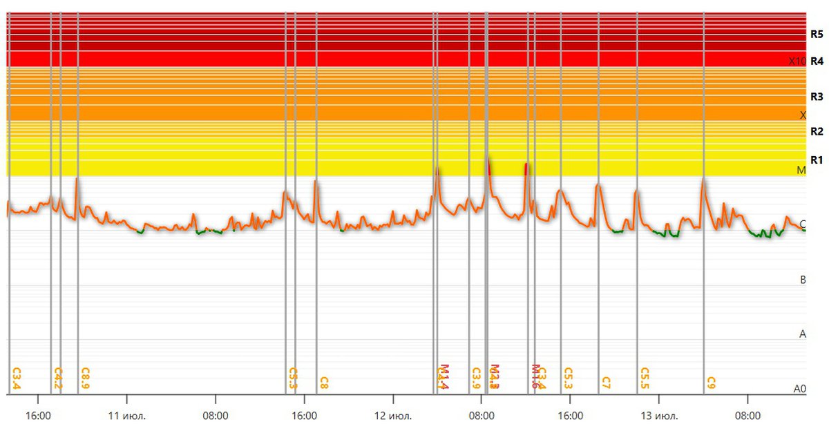 14 июля геомагнитная обстановка на Земле ожидается в пределах нормы, считают аналитики NOAA США и британского Met Office. Ожидается, что до полноценной геомагнитной бури дело не дойдет.