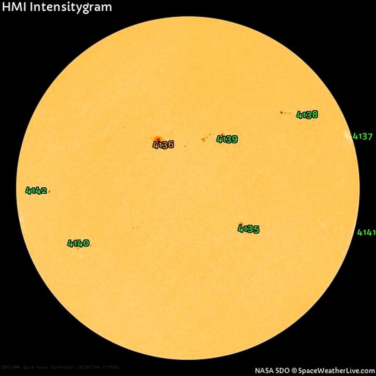 Последние вспышки на Солнце не привели к корональным выбросам массы в сторону Земли, но вскоре это может измениться. Сейчас на Землю нацеливается активное солнечное пятно AR4136, обладающее нестабильным магнитным полем.