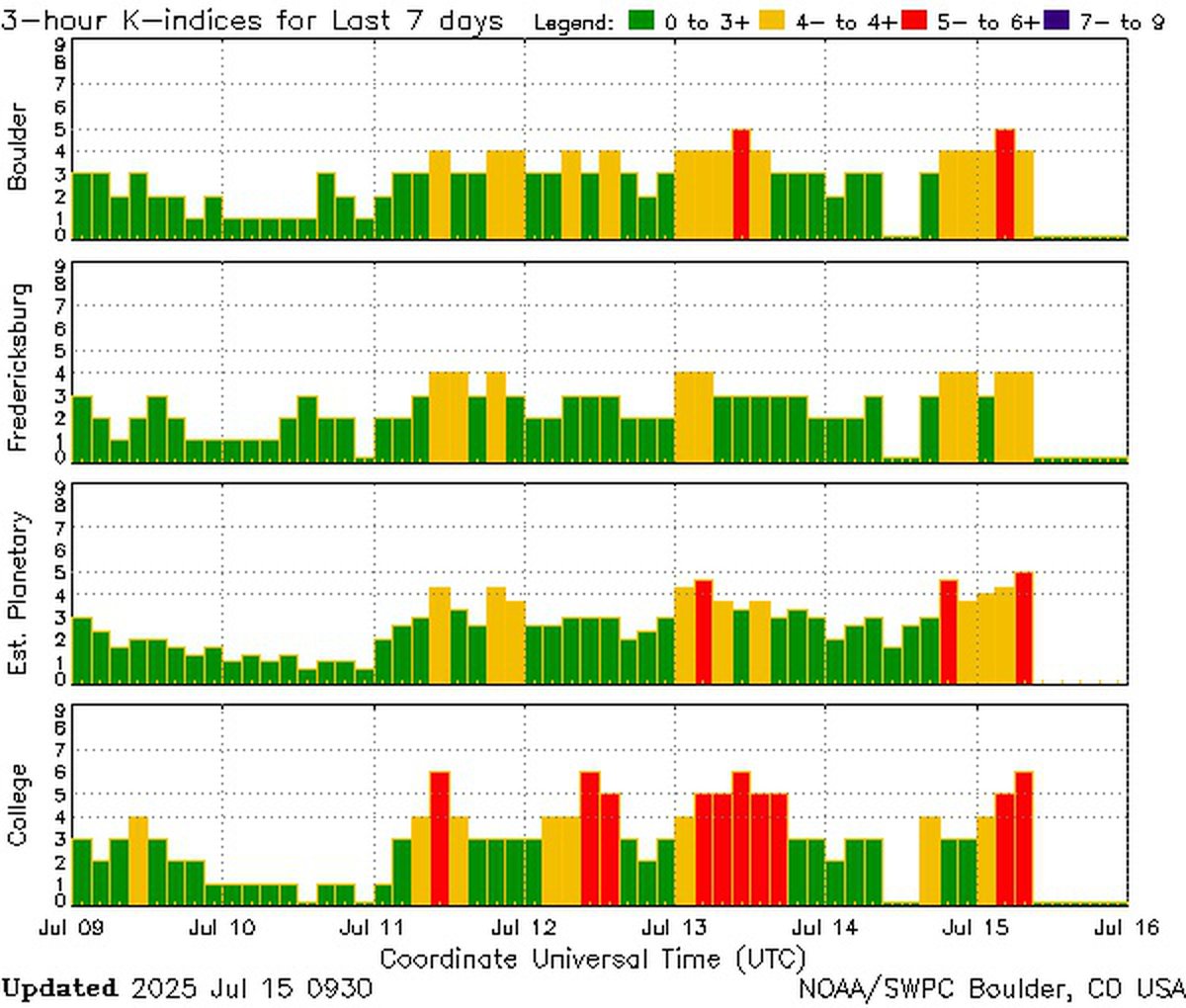Вопреки прогнозам аналитиков, утром 15 июля на Земле началась магнитная буря. Предполагалось, что геомагнитная обстановка в этот день будет спокойной и в худшем случае магнитосфера будет немного возбуждена.