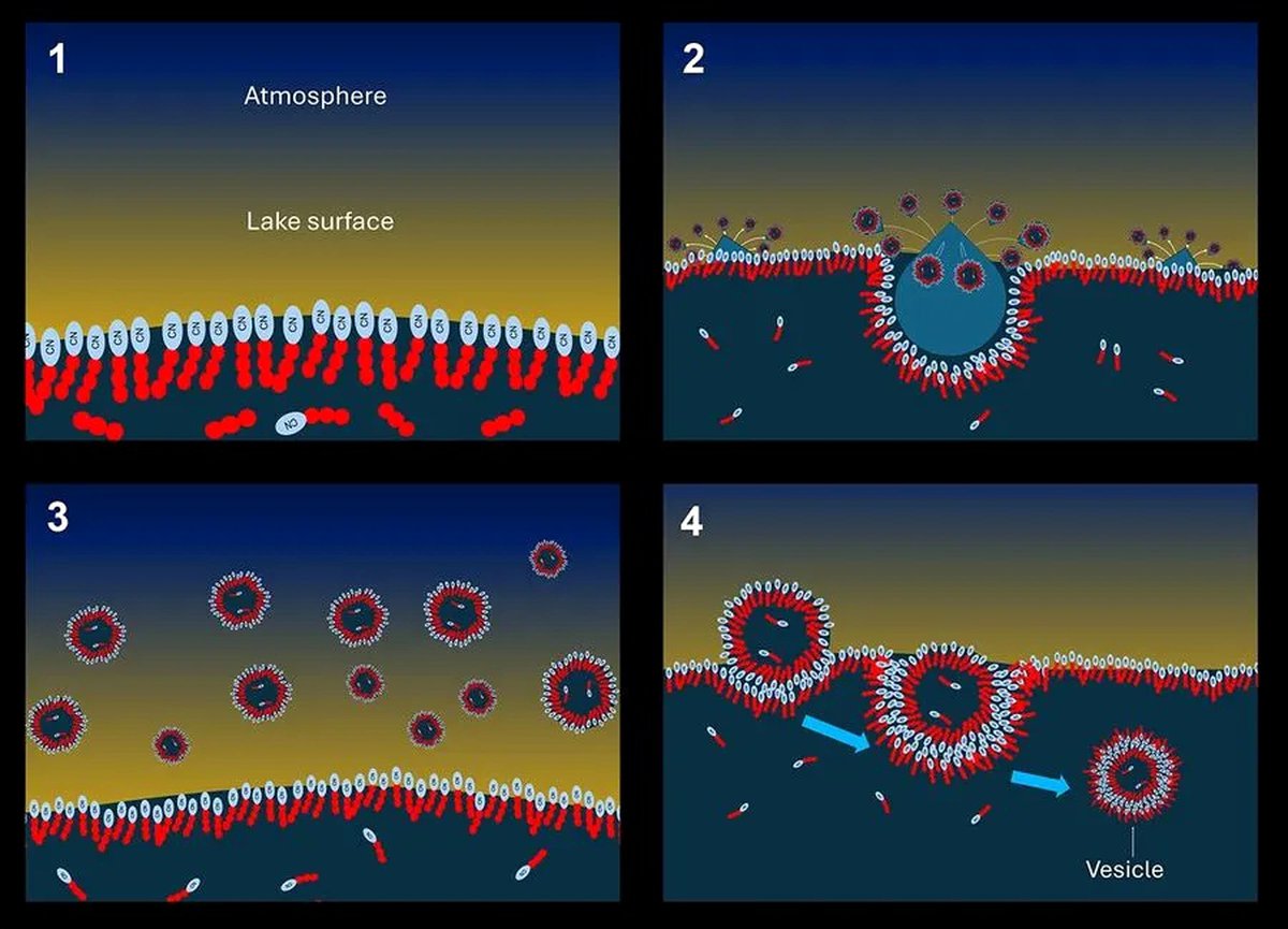 При возвращении этих капель на поверхность морей они могут взаимодействовать с амфифильным слоем и формировать двухслойные оболочки с жидкостью внутри. Такие структуры — это важный этап на пути к формированию протоклеток.