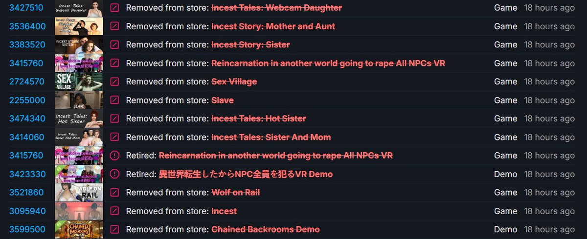В пункте отдельно отмечается, что речь может идти об «определенных видах контента, предназначенных для взрослых». По всей видимости, после появления нового правила Steam начали активно чистить от таких игр.