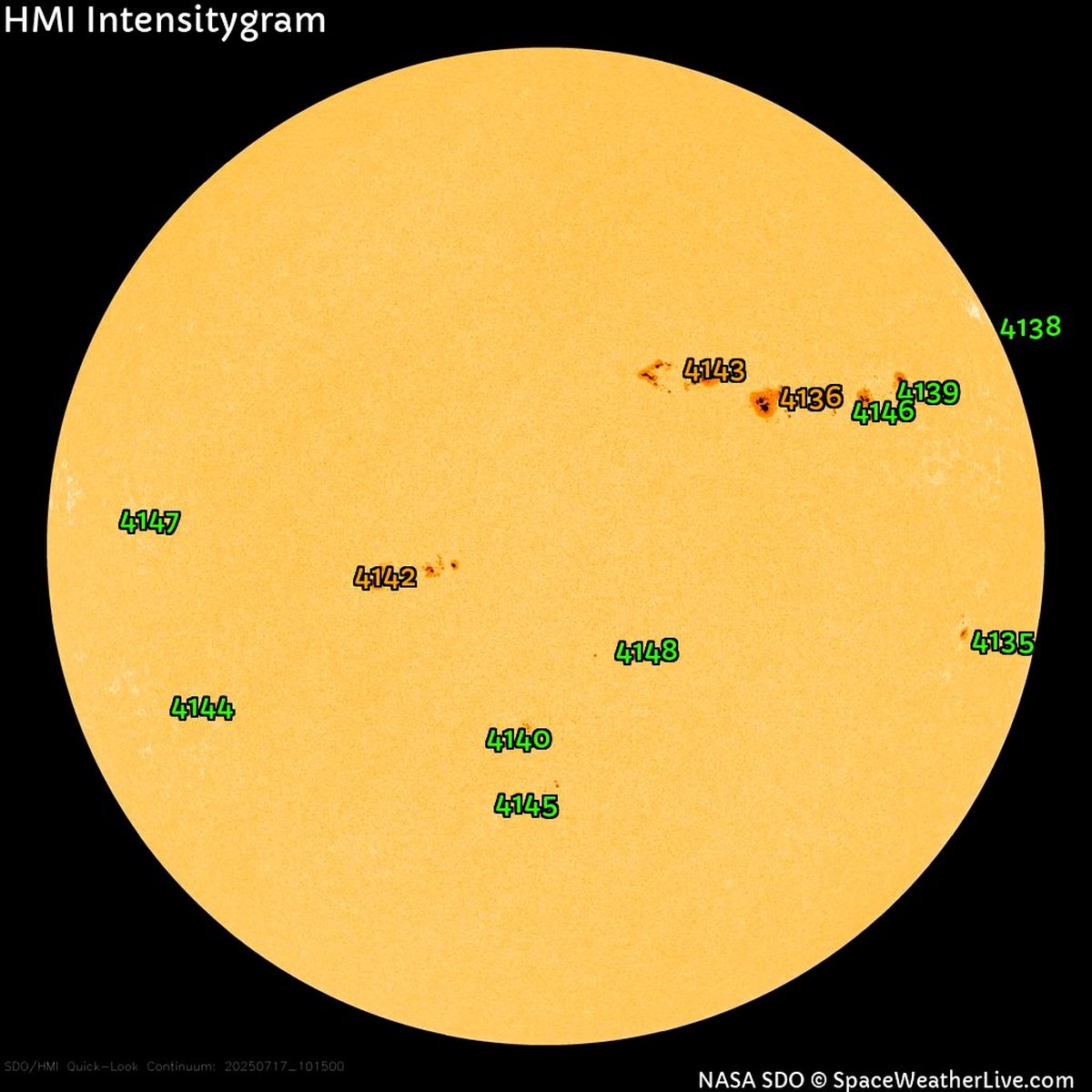Кроме того, интерес представляет солнечное пятно AR4136. 15 июля астроном-любитель Дэвид Уилсон из Шотландии заснял, как центр пятна пульсирует и порождает круговые волны по солнечной поверхности.