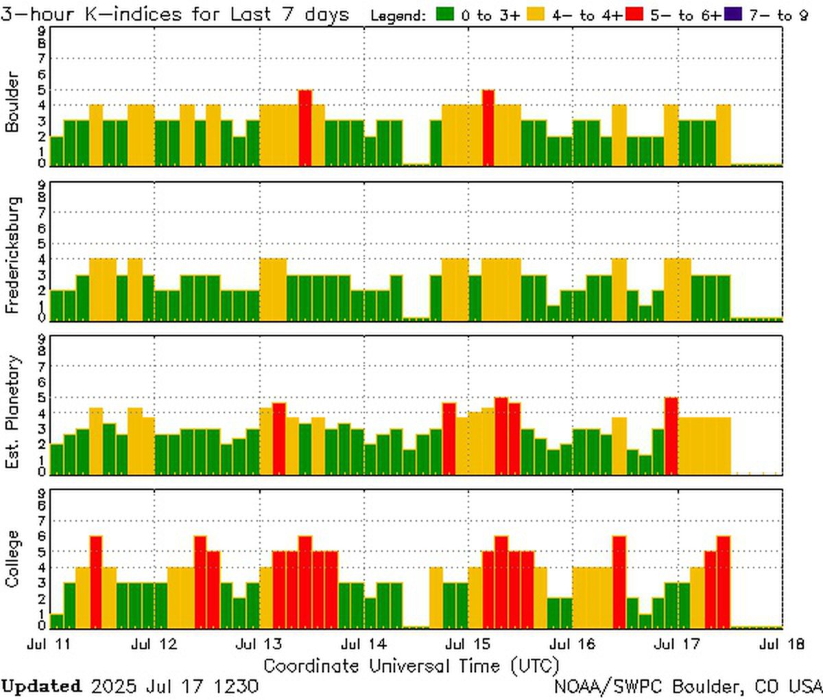 Согласно прогнозу NOAA, о полноценной магнитной буре 18 июля речь не идет, но уровень возбуждения магнитосферы будет близок к границе бури минимального класса G1. Похожий прогноз дают и британские специалисты.