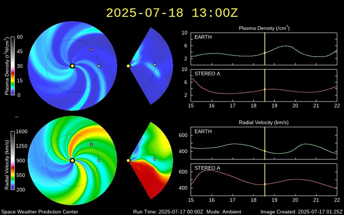 Этот поток достиг Земли ещё 16 июля и продолжает оказывать влияние на магнитную обстановку. 17 июля, например, скорость солнечного ветра усилилась до более чем 700 километров в секунду; в некоторых регионах Земли начались слабые магнитные бури.