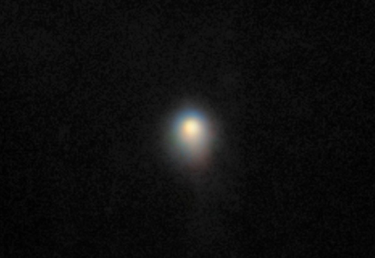 Еще один снимок демонстрирует кому, облако газа и пыли, окружающее ядро 3I/ATLAS. Именно этот снимок показывает истинные цвета кометы — на самом деле она не радужная.